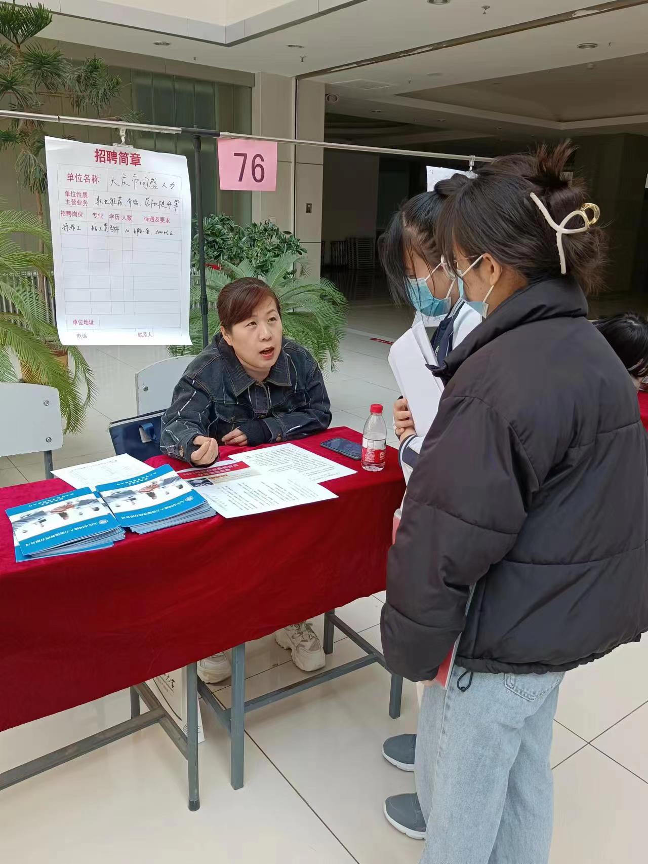 僅大慶國盛人力資源有限公司就接受80余名求職者簡歷,提供近100余人的咨詢服務(wù),發(fā)放企業(yè)宣傳手冊120份。