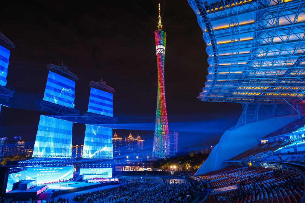 11月9日,十五運(yùn)會(huì)的主題口號(hào)“激情全運(yùn)會(huì),活力大灣區(qū)”和殘?zhí)貖W會(huì)的主題口號(hào)“追夢(mèng)大灣區(qū),出彩人生路”在儀式上發(fā)布。新華社記者 劉大偉 攝